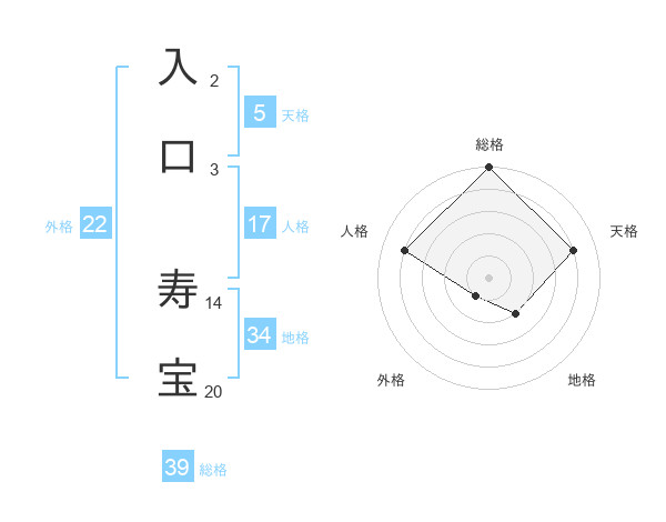 入口 寿宝さんの総格は39画の5点!