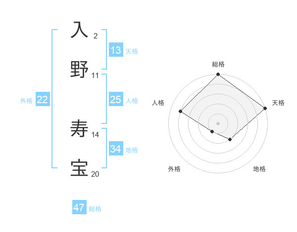 入野 寿宝さんの総格は47画の5点!