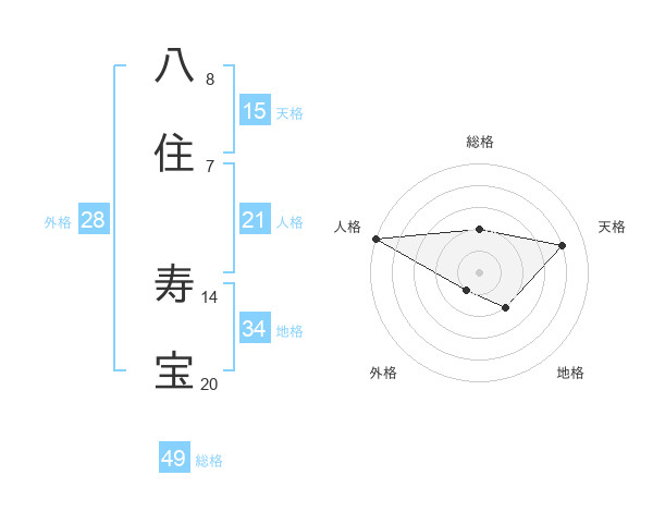 八住 寿宝さんの総格は49画の2点!