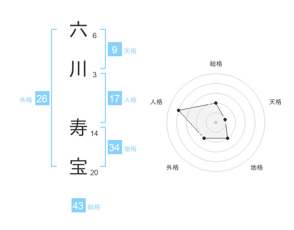 六川 寿宝さんの総格は43画の2点!