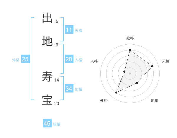 出地 寿宝さんの総格は45画の4点!