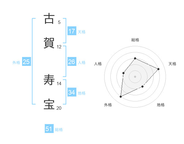 古賀 寿宝さんの天格は17画の4点!