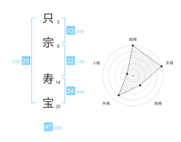 只宗 寿宝さんを姓名の画数から五運を鑑定
