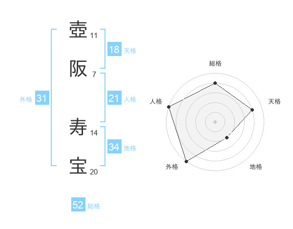 壺阪 寿宝さんの総格は52画の4点!