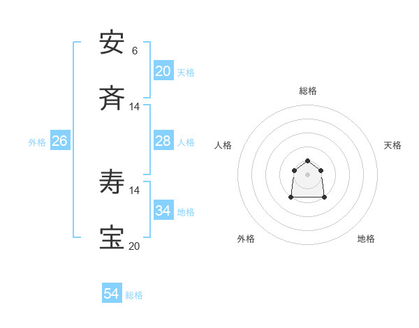 安斉 寿宝さんの総格は54画の1点!