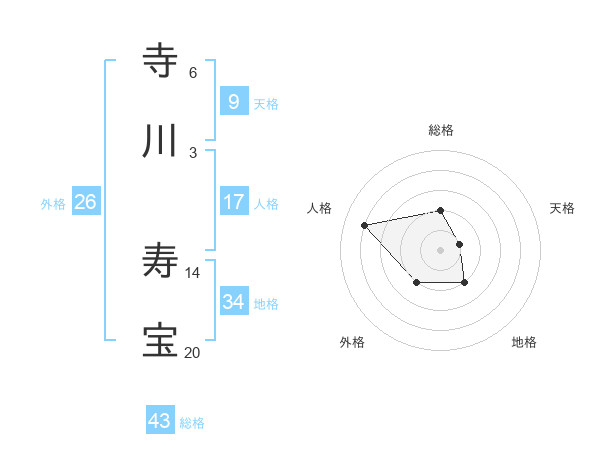 寺川 寿宝さんの総格は43画の2点!