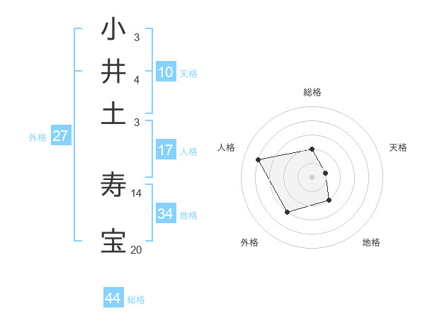 小井土 寿宝さんを姓名の画数から五運を鑑定