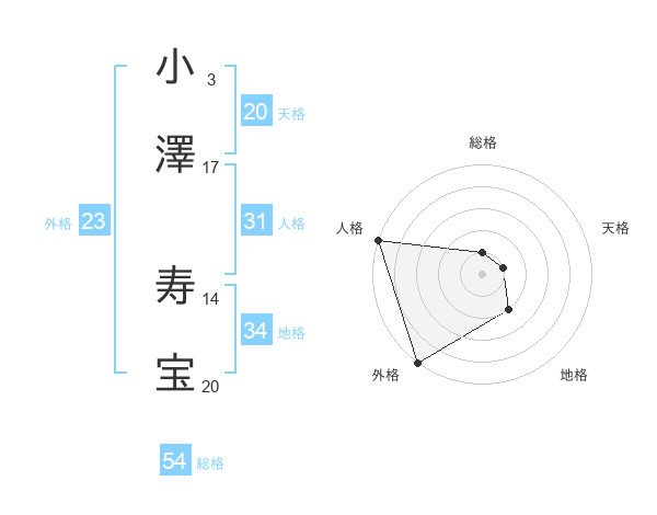 小澤 寿宝さんの外格は23画の5点!