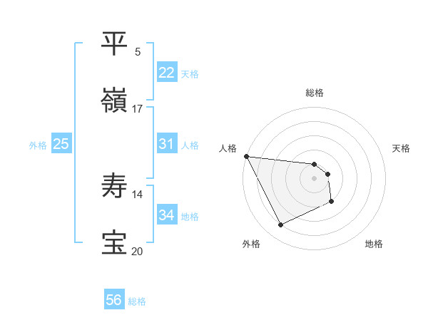平嶺 寿宝さんを姓名の画数から五運を鑑定
