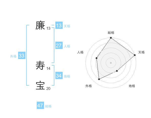 廉 寿宝さんを姓名の画数から五運を鑑定
