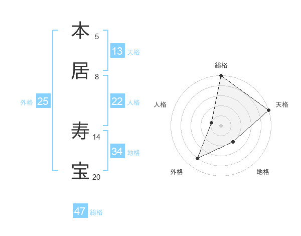 本居 寿宝さんを姓名の画数から五運を鑑定