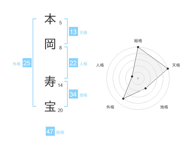 本岡 寿宝さんを姓名の画数から五運を鑑定