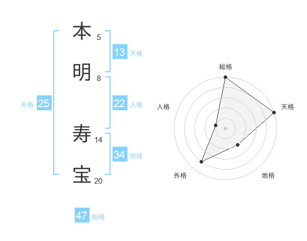 本明 寿宝さんを姓名の画数から五運を鑑定
