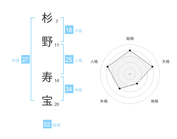 杉野 寿宝さんの総格は52画の4点!