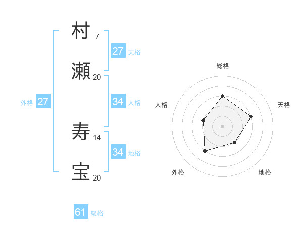 村瀬 寿宝さんの外格は27画の3点!