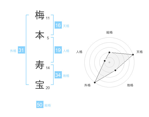 梅本 寿宝さんの総格は50画の2点!