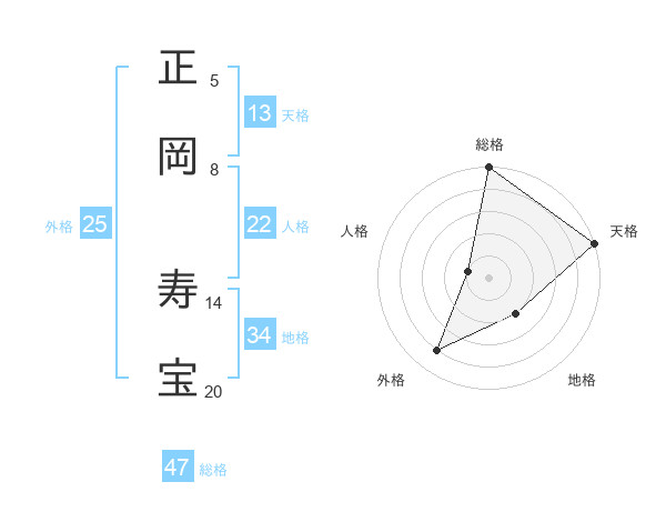 正岡 寿宝さんを姓名の画数から五運を鑑定