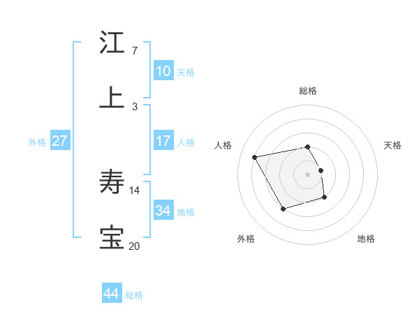 江上 寿宝さんの総格は44画の2点!