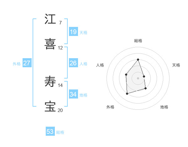 江喜 寿宝さんを姓名の画数から五運を鑑定