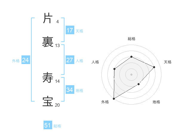 片裏 寿宝さんを姓名の画数から五運を鑑定