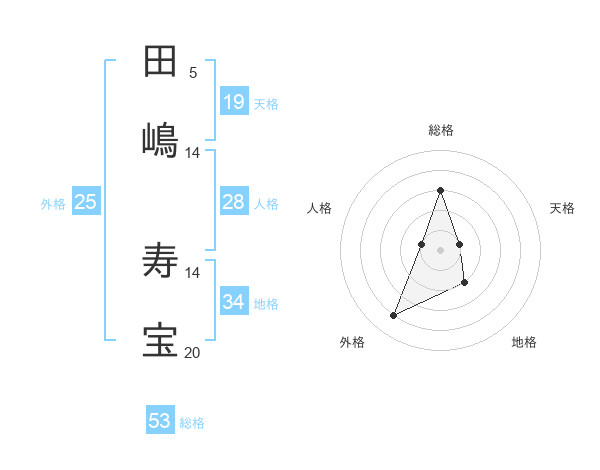 田嶋 寿宝さんの総格は53画の3点!