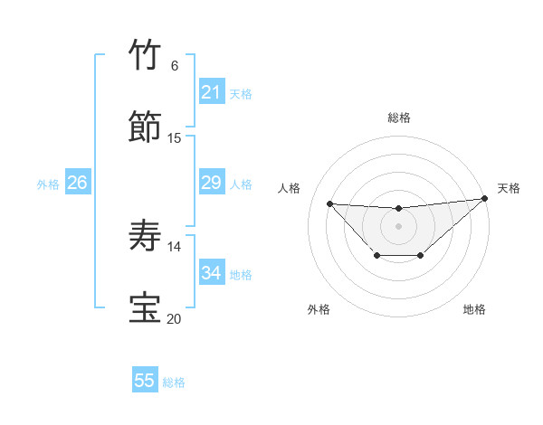 竹節 寿宝さんを姓名の画数から五運を鑑定