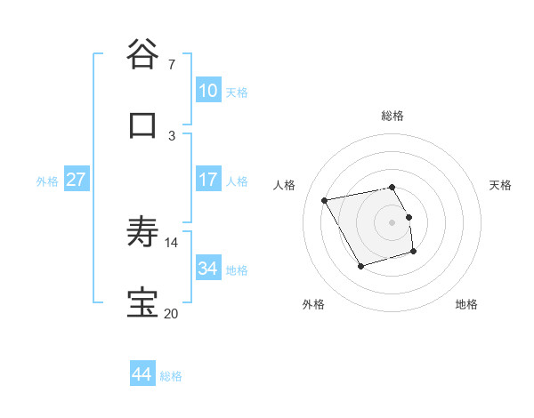 谷口 寿宝さんの総格は44画の2点!