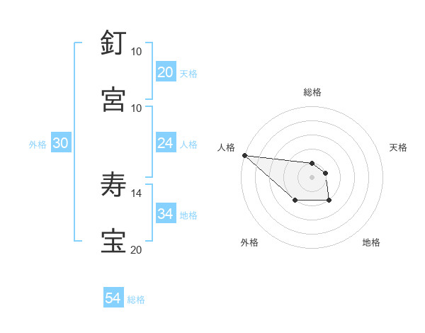 釘宮 寿宝さんの天格は20画の1点!