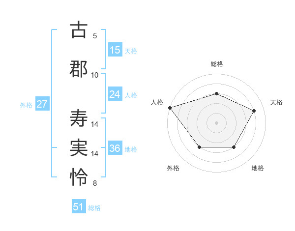 古郡 寿実怜さんの総格は51画の3点!