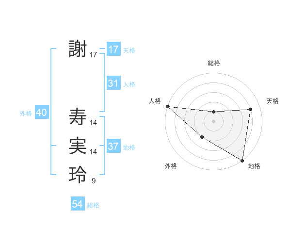 謝 寿実玲さんを姓名の画数から五運を鑑定