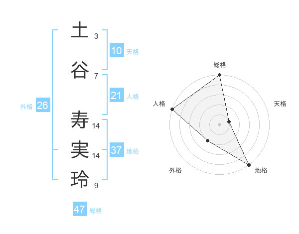 土谷 寿実玲さんを姓名の画数から五運を鑑定