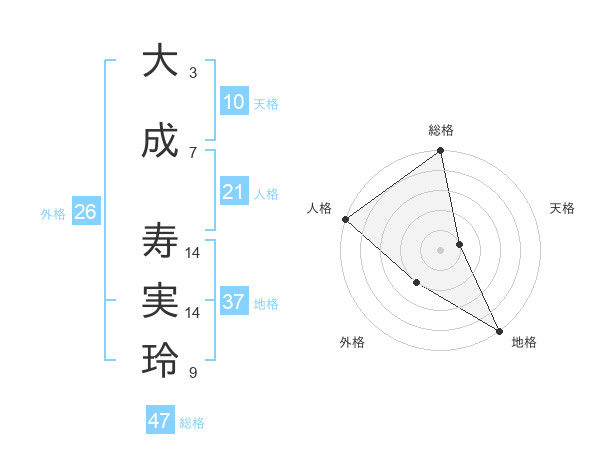 大成 寿実玲さんを姓名の画数から五運を鑑定