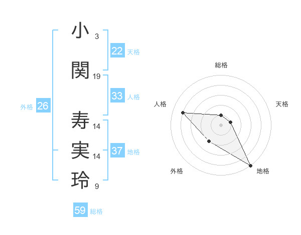 小関 寿実玲さんの地格は37画の5点!