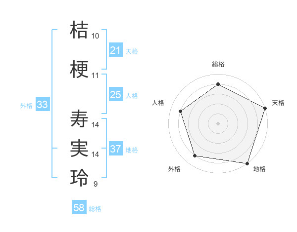 桔梗 寿実玲さんを姓名の画数から五運を鑑定