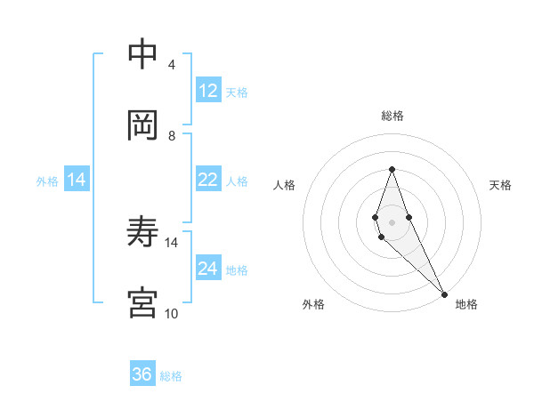 中岡 寿宮さんを姓名の画数から五運を鑑定