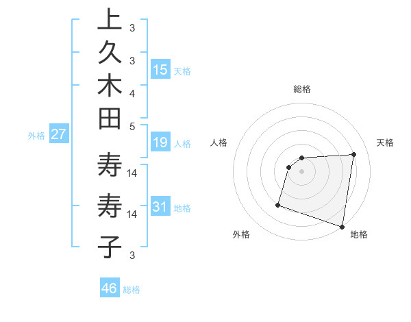 上久木田 寿寿子さんを姓名の画数から五運を鑑定