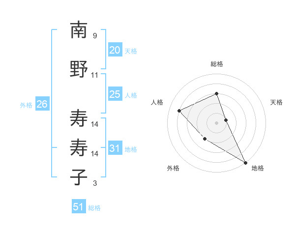 南野 寿寿子さんを姓名の画数から五運を鑑定