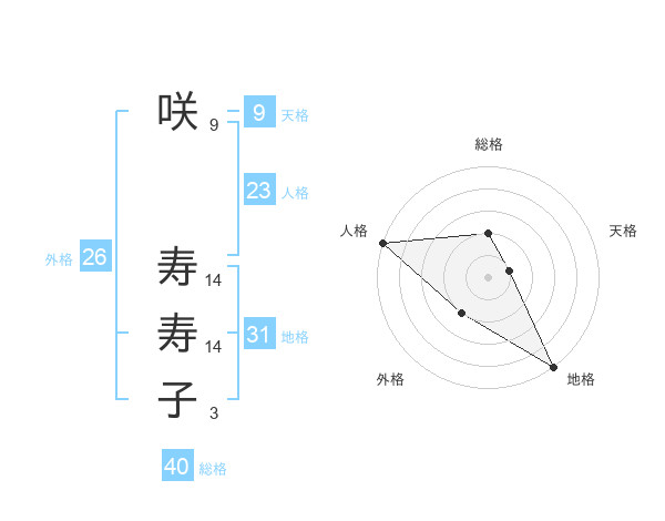 咲 寿寿子さんの地格は31画の5点!