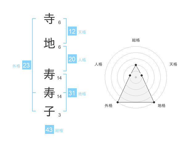 寺地 寿寿子さんの総格は43画の2点!