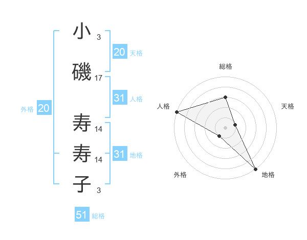 小磯 寿寿子さんの外格は20画の1点!