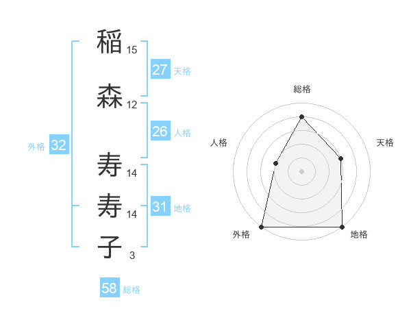稲森 寿寿子さんを姓名の画数から五運を鑑定