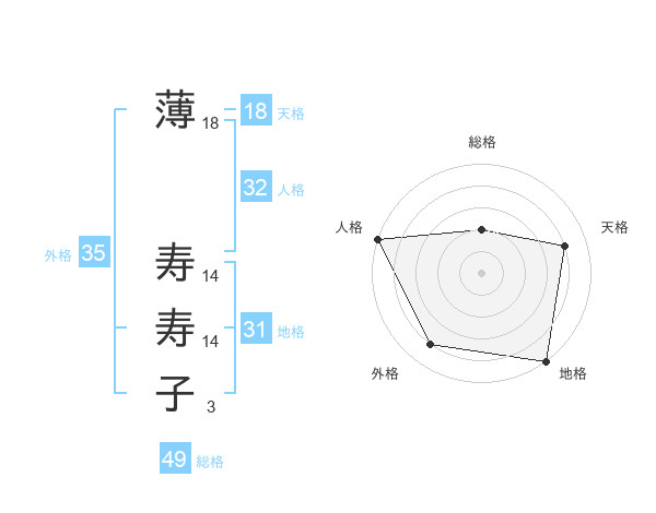 薄 寿寿子さんの外格は35画の4点!