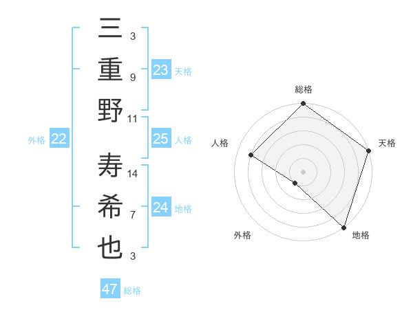三重野 寿希也さんを姓名の画数から五運を鑑定