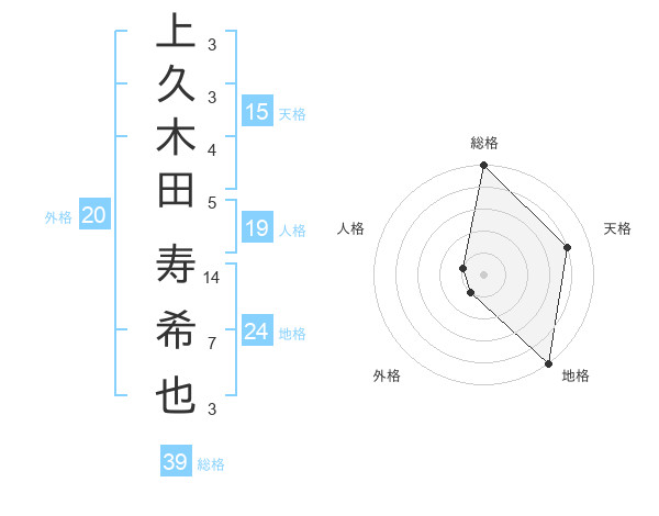 上久木田 寿希也さんを姓名の画数から五運を鑑定