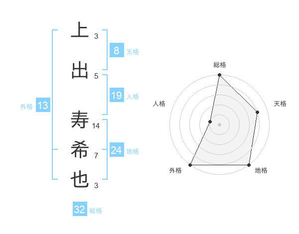 上出 寿希也さんを姓名の画数から五運を鑑定