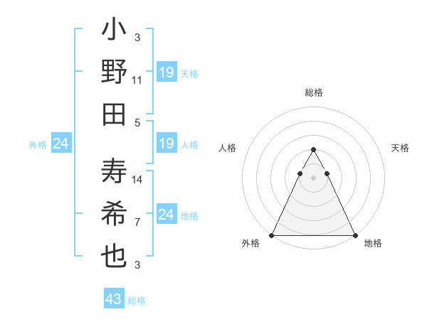 小野田 寿希也さんの外格は24画の5点!