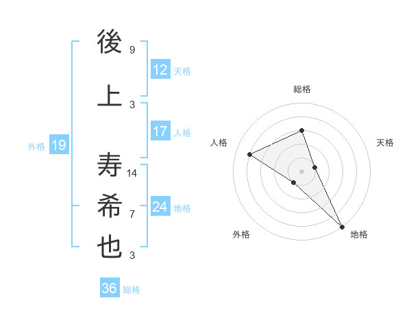 後上 寿希也さんの天格は12画の1点!