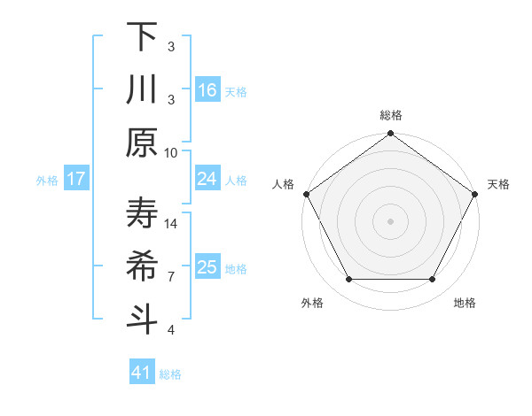 下川原 寿希斗さんを姓名の画数から五運を鑑定
