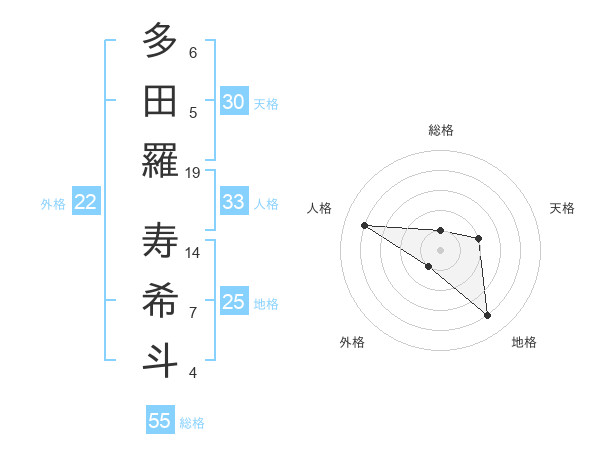 多田羅 寿希斗さんの天格は30画の2点!
