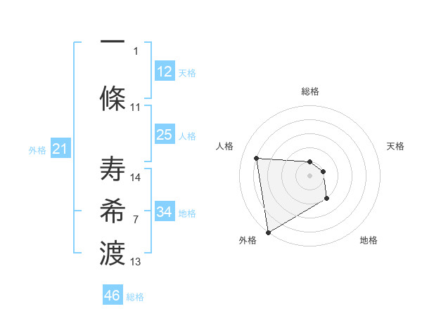 一條 寿希渡さんを姓名の画数から五運を鑑定